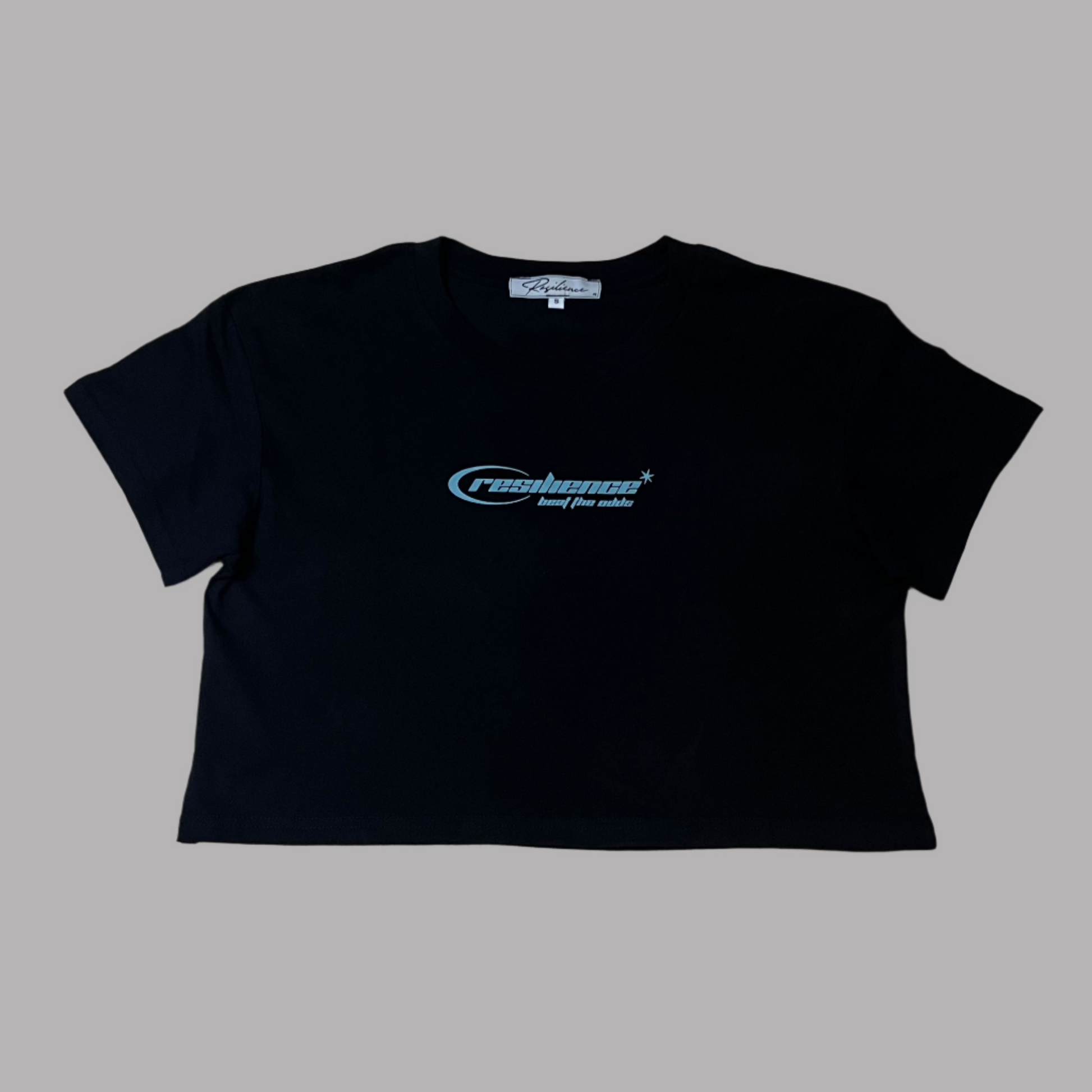 The Cloud State Crop Tee in Onyx black is an essential with a Calabasas-inspired design made for everyday elevation. Featuring a bold front print with Resilience and our signature phrase "Beat the Odds," this piece is all about confidence, comfort, and purpose.
