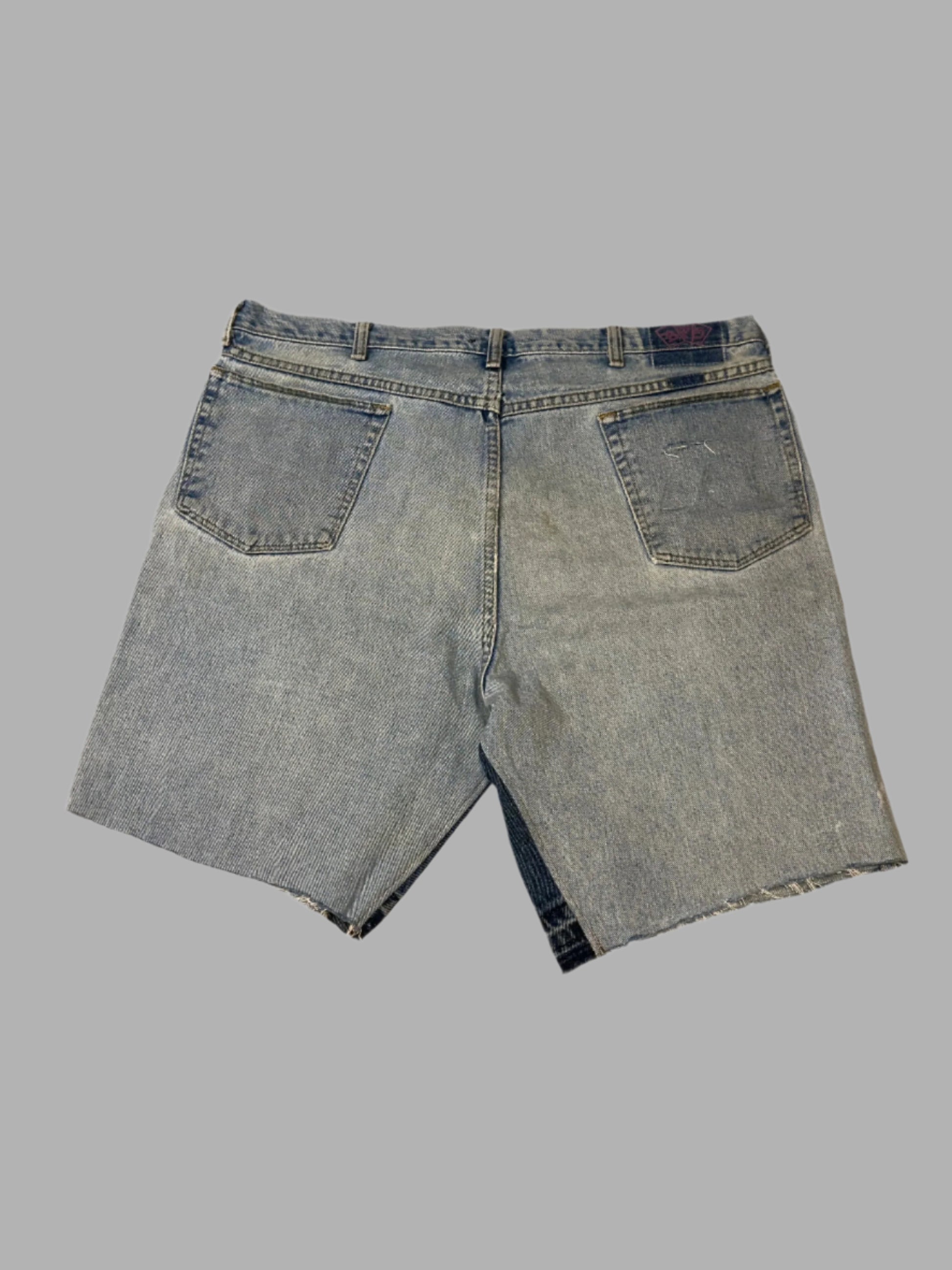 These custom-cut jean shorts are distressed with intention — featuring frayed hems, lightly worn pocket detailing, and our signature logo etched near the seam. This pair is uniquely patched with medic-inspired designs, nodding to the grit and grind of first responders. Hand-altered and built to stand out, these shorts deliver streetwear with purpose.