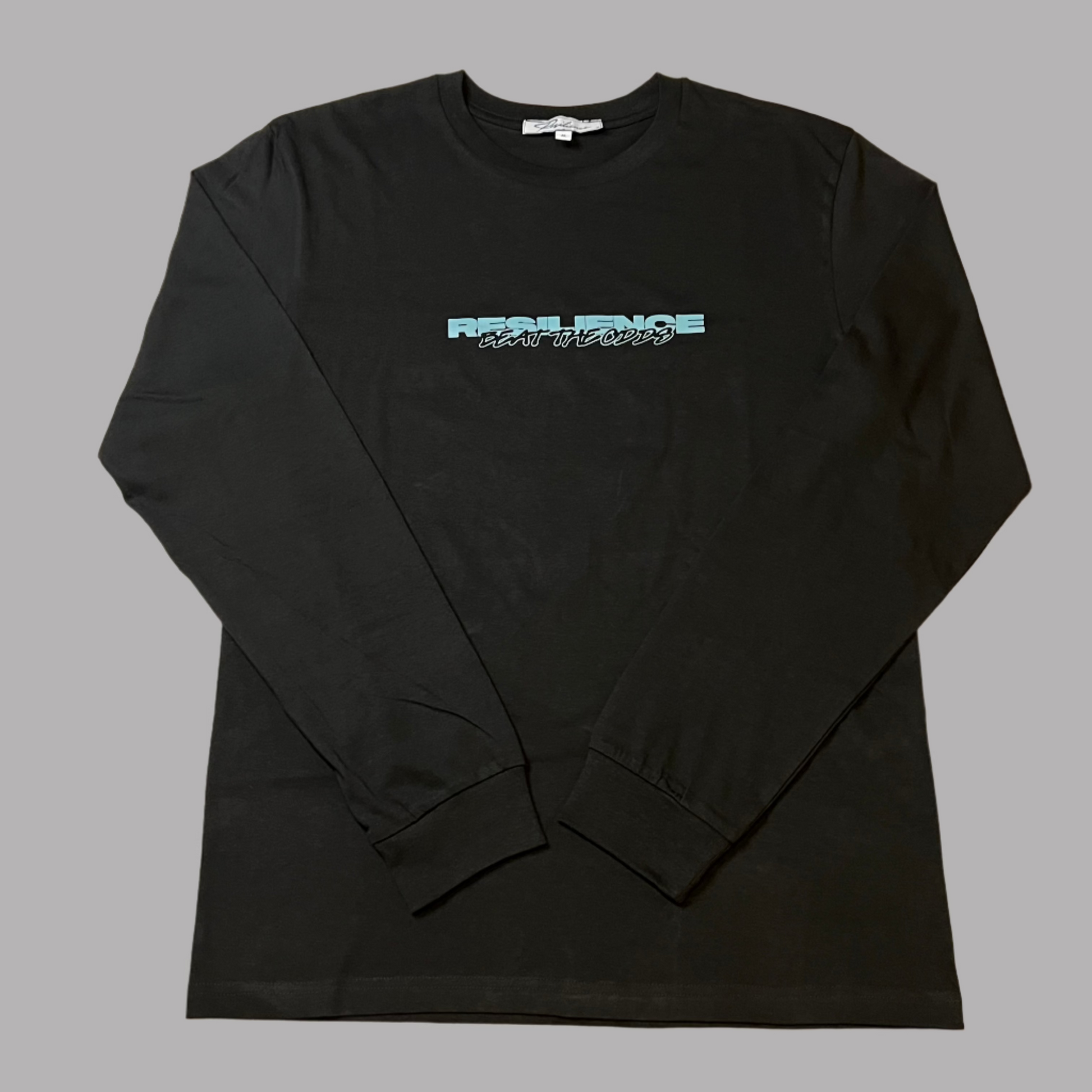 Designed for comfort and impact, this lightweight long sleeve is perfect for summer layering. Featuring a bold RESILIENCE front print in soft baby blue, with a subtle negative print underneath reading "BEAT THE ODDS" — a quiet but powerful reminder of what we stand for.
